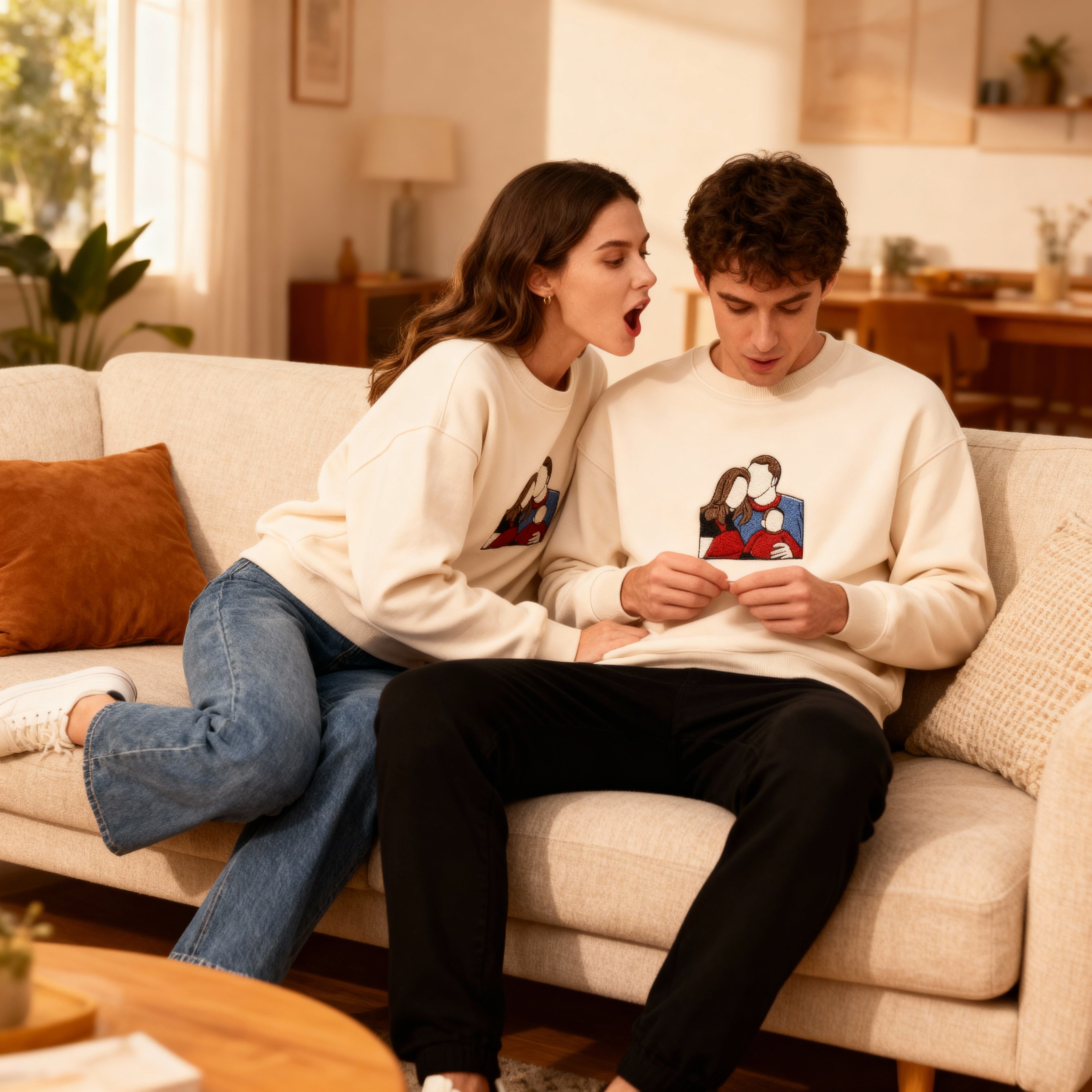 Embroidery that brings you closer — create a matching hoodie that tells your love story.
